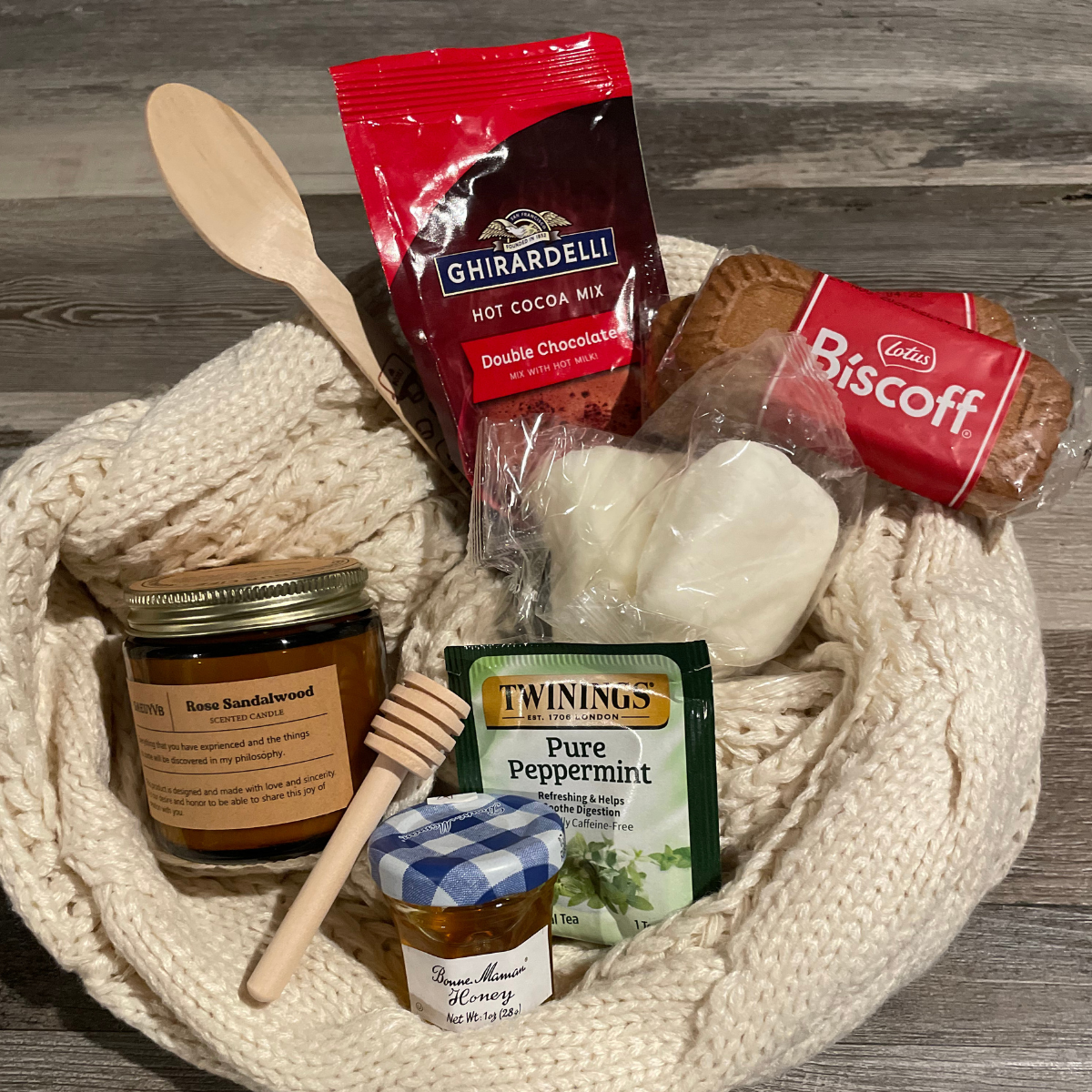 Warm Hugs Gift Basket with Personalized Tumbler/Mug