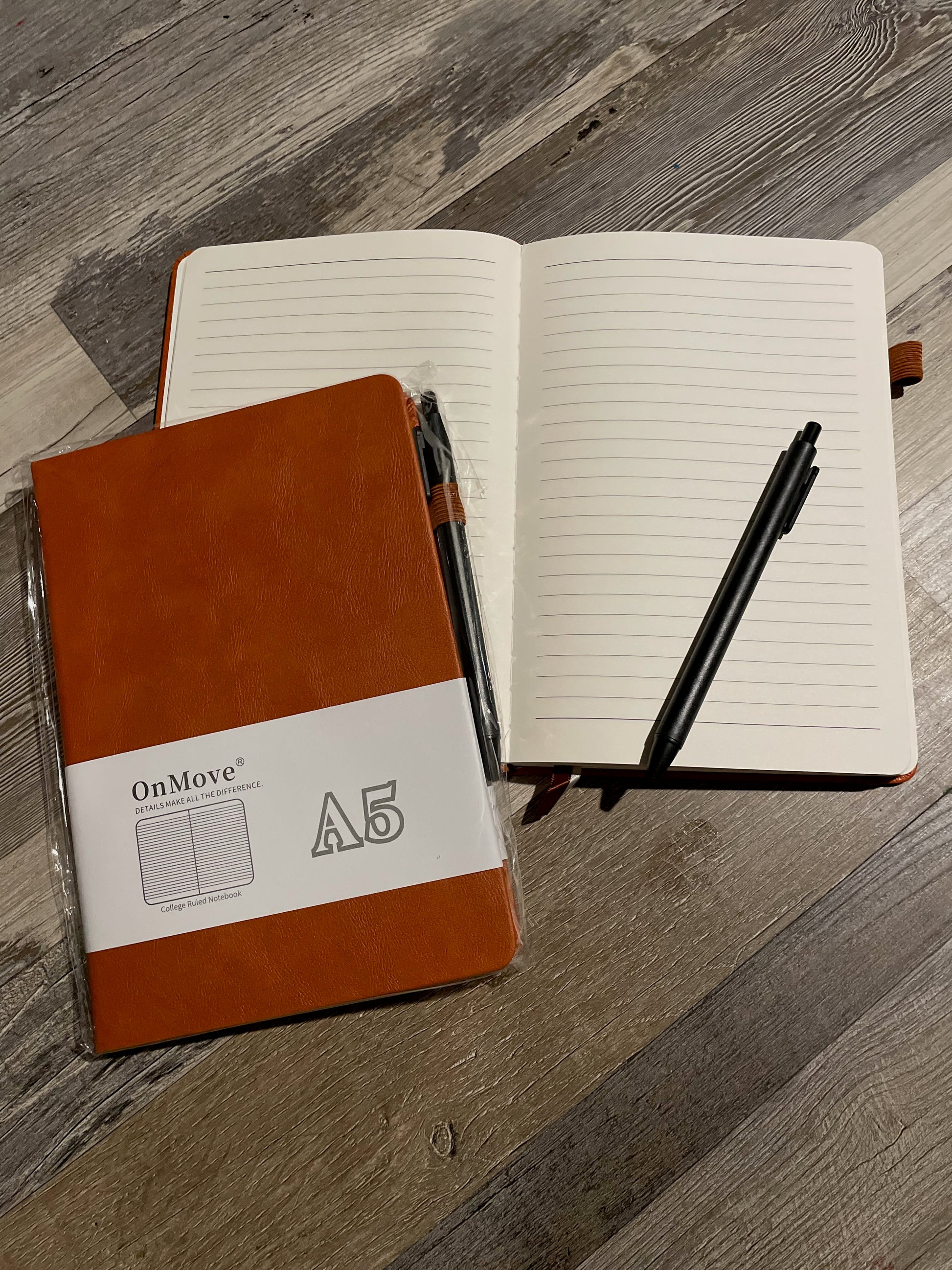 Featuring premium paper, an elastic pen pouch, and a secure elastic band closure, this A5 notebook is perfect for jotting down ideas at home, school, or the office.